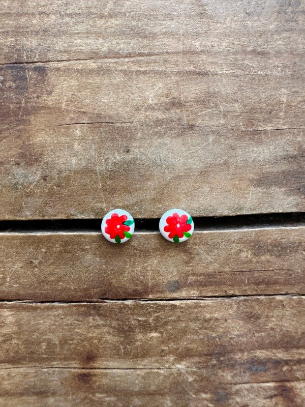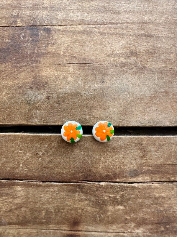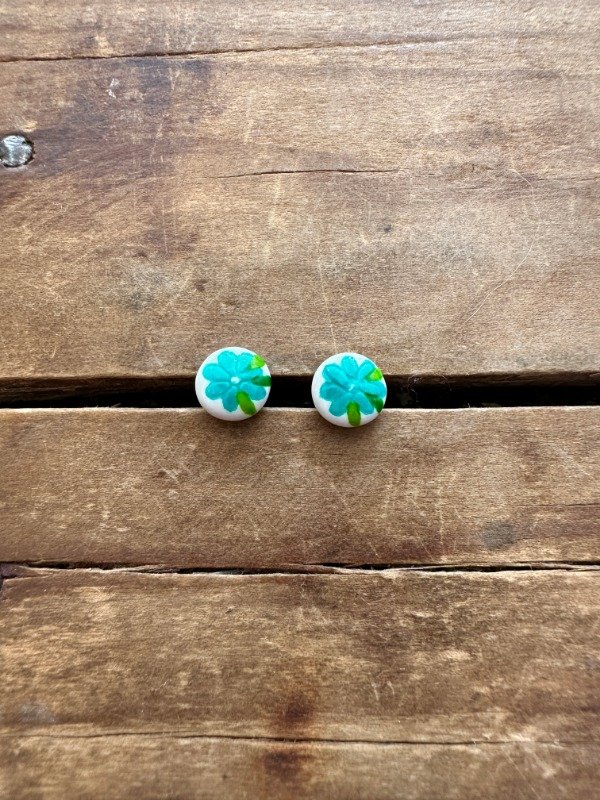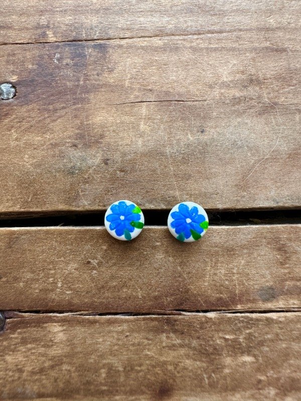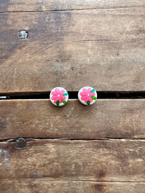 Aros de cerámica realizados a mano. Los pasantes son de acero quirúrgico y las flores pintados a mano.