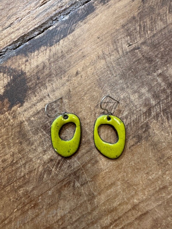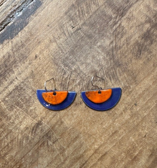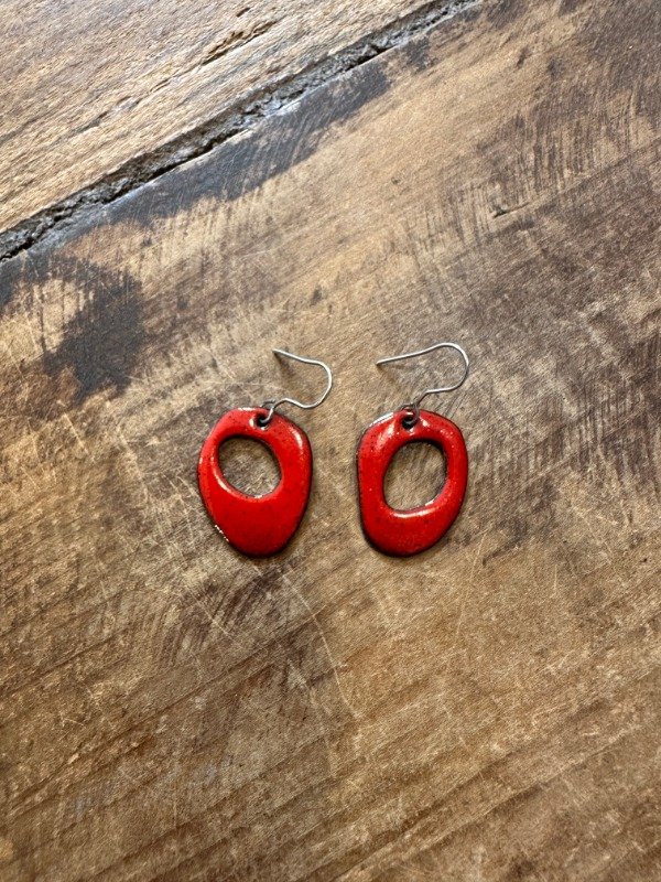 Aros esmaltados sobre cobre con diferentes formas. Hechos artesanalmente