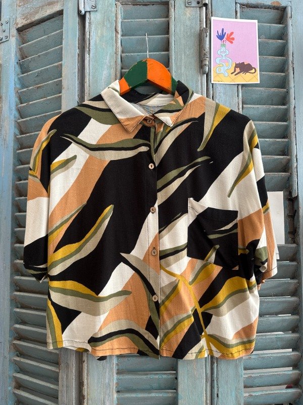 Camisa manga corta estampada de tipo lino con un bolsillo